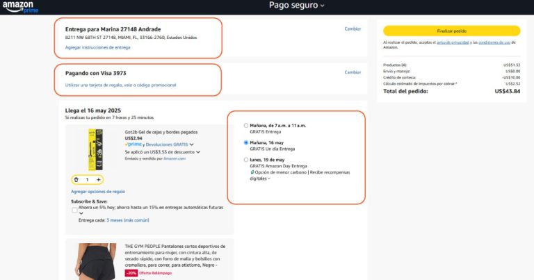 5.3. Amazon acepta diversos métodos de pago, incluyendo tarjetas de crédito y débito internacionales. Selecciona el que prefieras y confirma que los datos sean correctos antes de proceder.