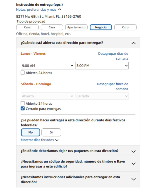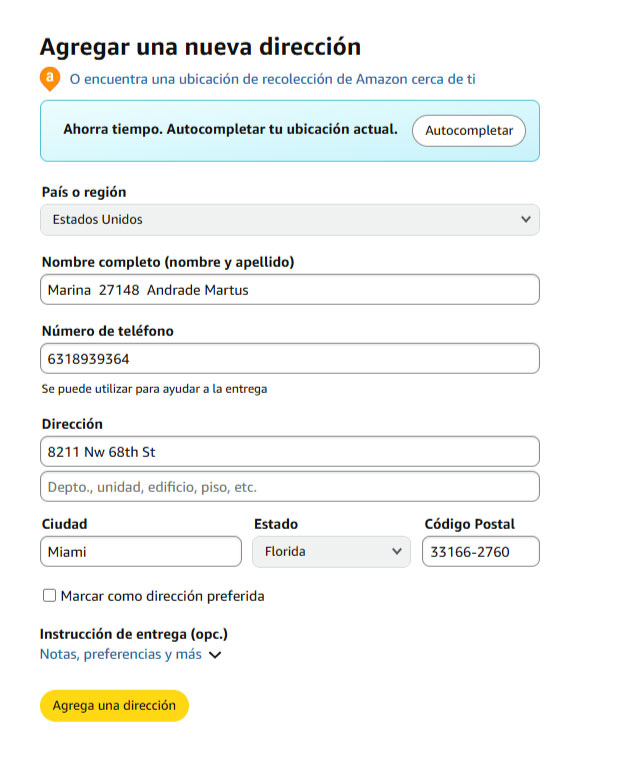 Paso 3: Registrar la Dirección del Casillero en Amazon