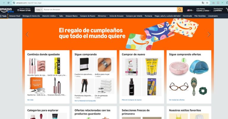 Una vez que hayas creado tu cuenta, podrás navegar por todas las categorías que Amazon ofrece: Electrónica, Ropa, Hogar, Libros, y mucho más.