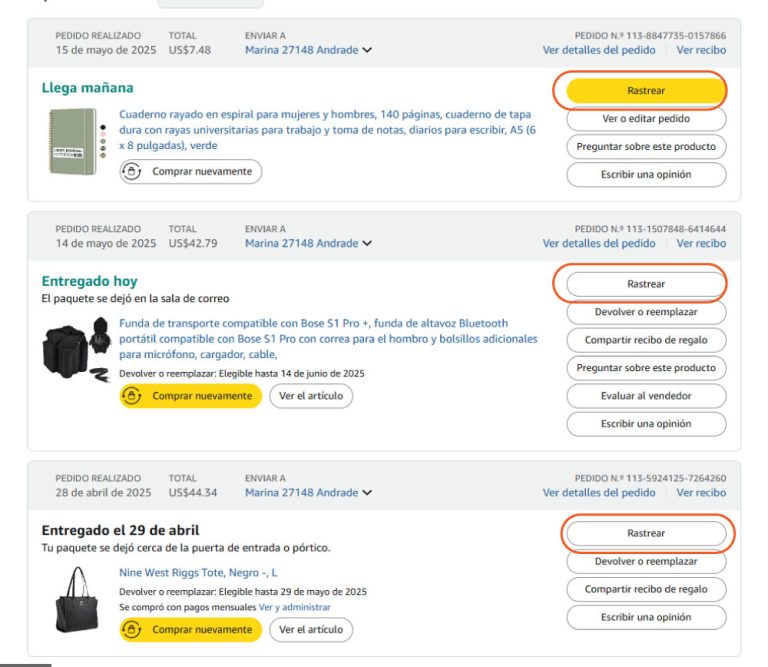6.2. Accede a “Mis Pedidos” en tu cuenta de Amazon para rastrear el envío.